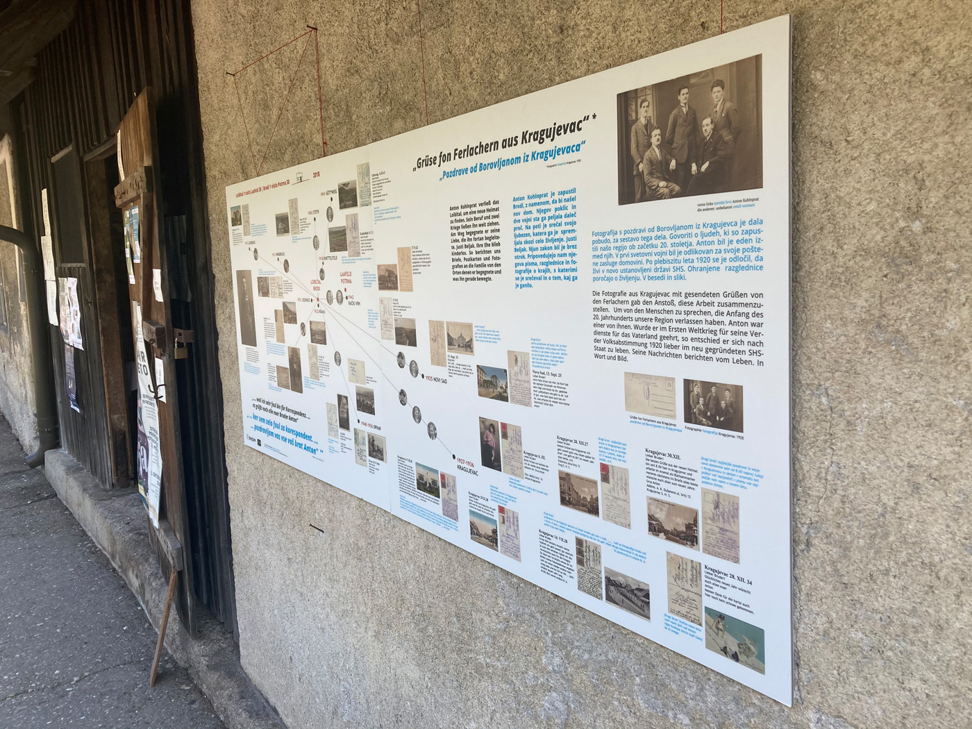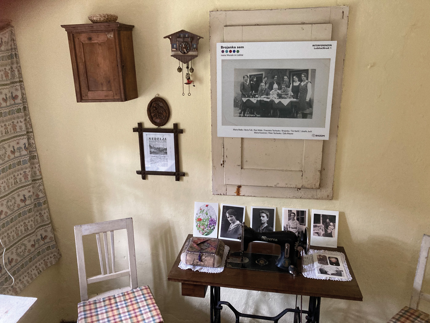 Dem Projekt Das Gedächtnis des Ortes · Kraj in njegov spomin sind, veranstaltet vom Grazer Künstlerkollektiv Rhizom, seit 2015 die INTERFERENZEN, Diskussionen zu den Themen Frauen, Migration, Bildung und Demokratieentwicklung, im Haus Brodi 1, im Pavelhaus in Laafeld bei Bad Radkersburg und in Graz vorausgegangen. Petra Kohlenprath, geboren 1972, gestaltete als Ausgangspunkt für die Gespräche Interventionen mit Materialien aus dem Familienarchiv in Abgleich und in Ergänzung mit in öffentlichen Archiven gefundenen Inhalten. Die Erzählungen ihres Vaters Hanzi Kohlenprath, geboren 1939 im Haus Brodi 1, bildeten dabei eine bedeutende Verbindung zwischen dem Damals und dem Heute. Welche Bedingungen und Möglichkeiten fanden die Bewohner:innen von Brodi 1 in den unterschiedlichen Zeiten vor? Welche Bedingungen und Möglichkeiten haben wir heute? Was ist gleich geblieben? Was hat sich wann verändert?