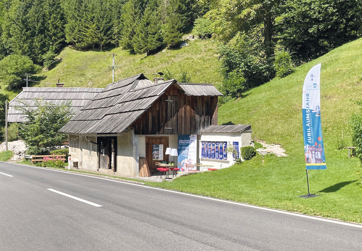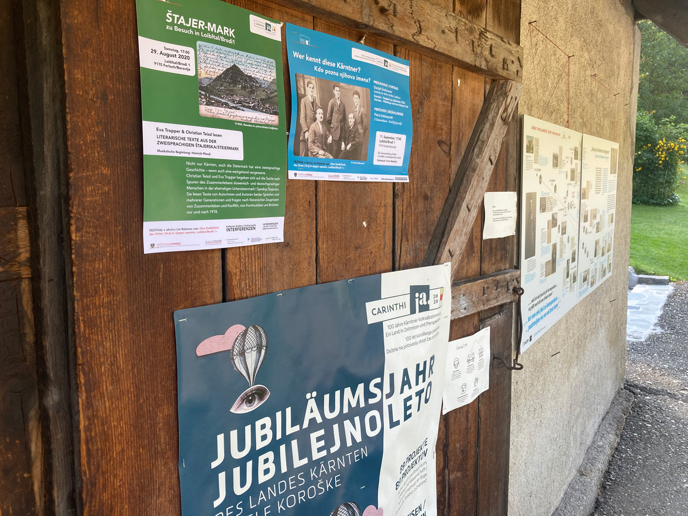 Brodi 1 im Kärntner Loibltal war im Rahmen der Landesausstellung CARINTHIja2020 Austragungsort des Projektes Das Gedächtnis des Ortes · Kraj in njegov spomin. Ein Jahr lang wurde die Holzhütte zum öffentlichen Lesesaal, zum Ausstellungs-, Erzähl- und Zuhörraum. Im Haus und am „Neuen Platz“ fanden Lesungen, Vorträge und Konzerte statt.