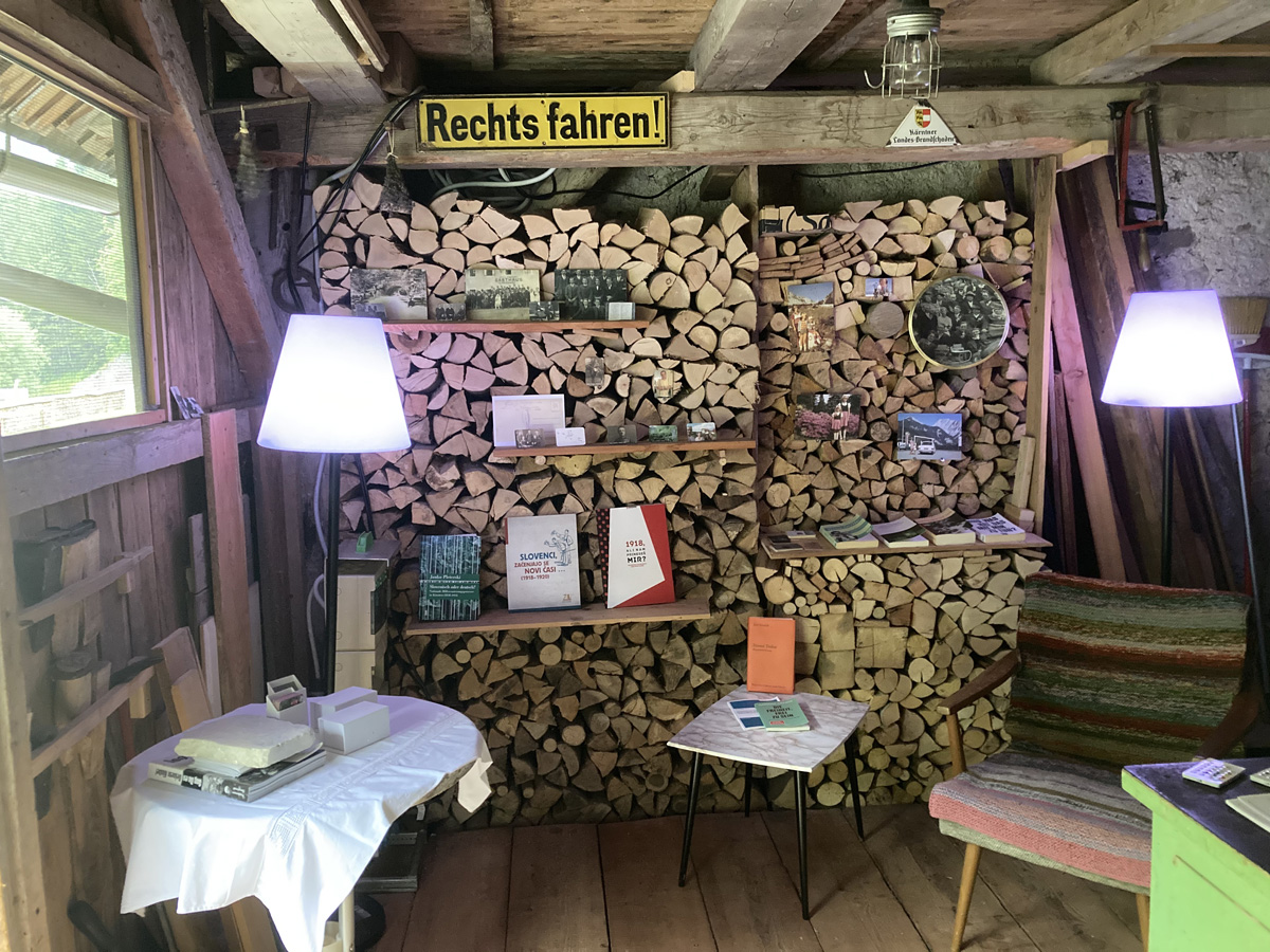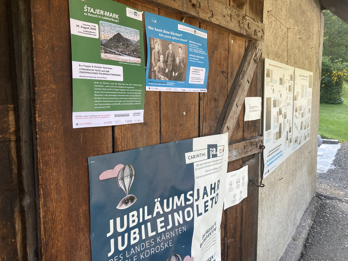 Brodi 1 im Kärntner Loibltal war im Rahmen der Landesausstellung CARINTHIja2020 Austragungsort des Projektes Das Gedächtnis des Ortes · Kraj in njegov spomin. Ein Jahr lang wurde die Holzhütte zum öffentlichen Lesesaal, zum Ausstellungs-, Erzähl- und Zuhörraum. Im Haus und am Neuen Platz fanden Lesungen, Vorträge und Konzerte statt.