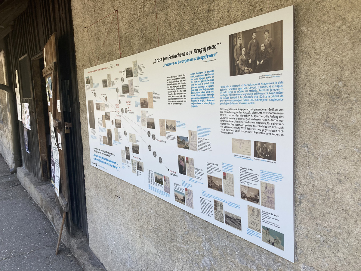 Das Haus Brodi 1 wurde 1896 von dem k. u. k. Straßeneinräumer Miha Kohlnprat und seiner ersten Frau Neža errichtet. Anhand seiner Geschichte, der Rekonstruktion der Lebenswege seiner Bewohner:innen sowie der Erzählungen von Hanzi Kohlenprath, dem Sohn von Zefi und Paul Kollenprat und Vater von Renate Rogi-Kohlenprath und Petra Kohlenprath, ermöglichte das Projekt Zugang zu österreichischer Geschichte des 20. Jahrhunderts.