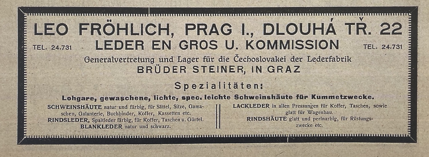 Die Werkstätte war im Erdgeschoss des dreistöckigen Hauses. Im oberen Stockwerk, beziehungsweise am Dachboden, hat unsere Familie gelebt. – mein Vater und die Mutter mit drei Kindern, im ersten stock lebten die Eltern meiner Mutter – auch mit den Kindern, im Erdgeschoss war die Werkstätte. Mit uns im Haus wohnte auch einer der Helfer, der bei meinem Großvater arbeitete. Gegenüber dem Haus war ein offener Platz, wo man Rinde trocknete – Fichtenrinde, die man aus Lom und Umgebung anlieferte. Man nannte sie Lohrinde und die Gerber haben sie bei der Bearbeitung der Häute verwendet. In der Nähe war eine Mühle, wo man die Rinde gemahlen und zu Lohrinde verarbeitet hat, die die Gerber verwendeten.