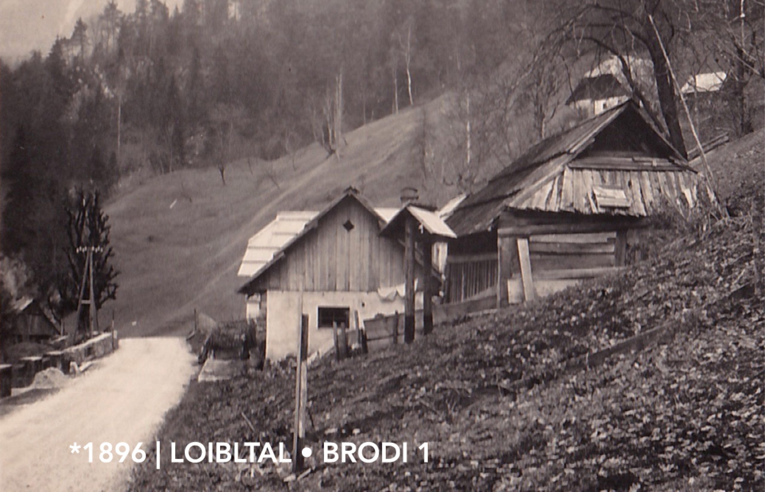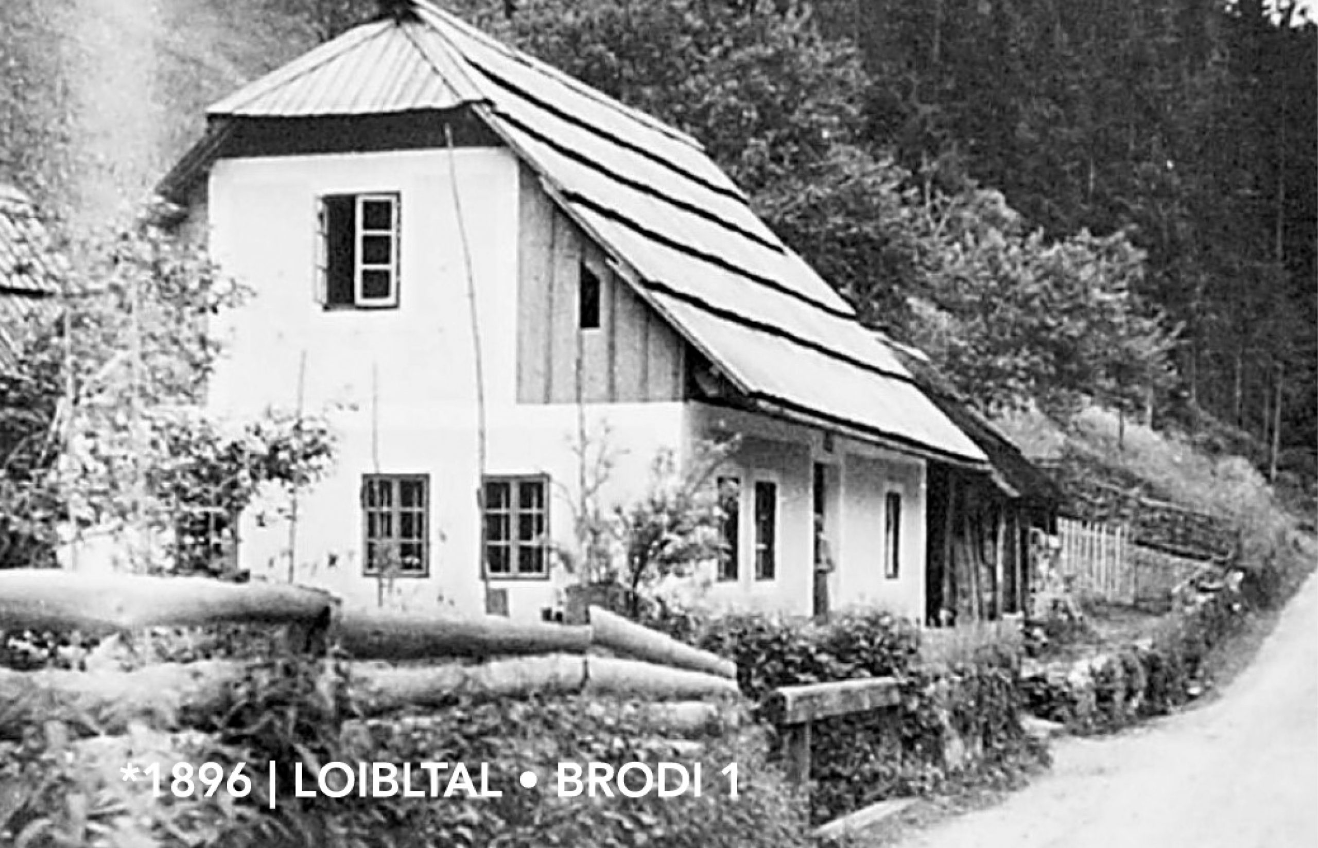 In 1896 Miha and Neža Kohlnprat build the house Brodi 1 and move with their three children, Mizi, Lena and Tona, from the alp to the valley. Miha has just got a job as a imperial and royal road mender. The house is a residence, but also a storage place for materials and tools needed in road construction. Another four children, Hanzi, Betti, Paul and Miha, are born in the house Brodi 1.