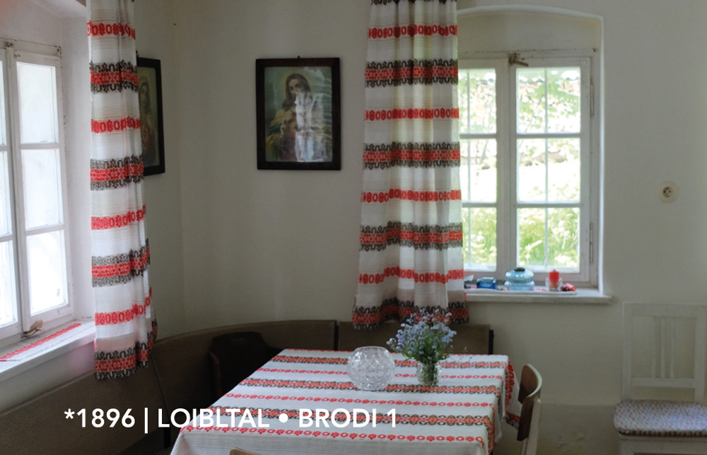 Nothing special had happened in Brodi 1, no one in our family had been of any consequence. This helped us to get into conversation by simply exchanging stories. The place is an example of many Austrian places, just as the lives of my ancestors were quite normal at that time. This allowed us to focus the project on everyday things, on common issues that affect many, if not all, people in some way, and to ask about comparable situations in family history in conversation with our guests. My ancestors – the generation of my grandparents, great aunts and paternal great uncles – took different paths politically. If today we (my sister and I) are perceived in the Loibl Valley – or rather in Ferlach, where we grew up – as coming from a Slovenian family, Slovenian is no longer an identity-forming characteristic for our grandcousins, even though we have the same great-grandparents. So we could meet our guests and listen to them without having to defend a self-contained family history.